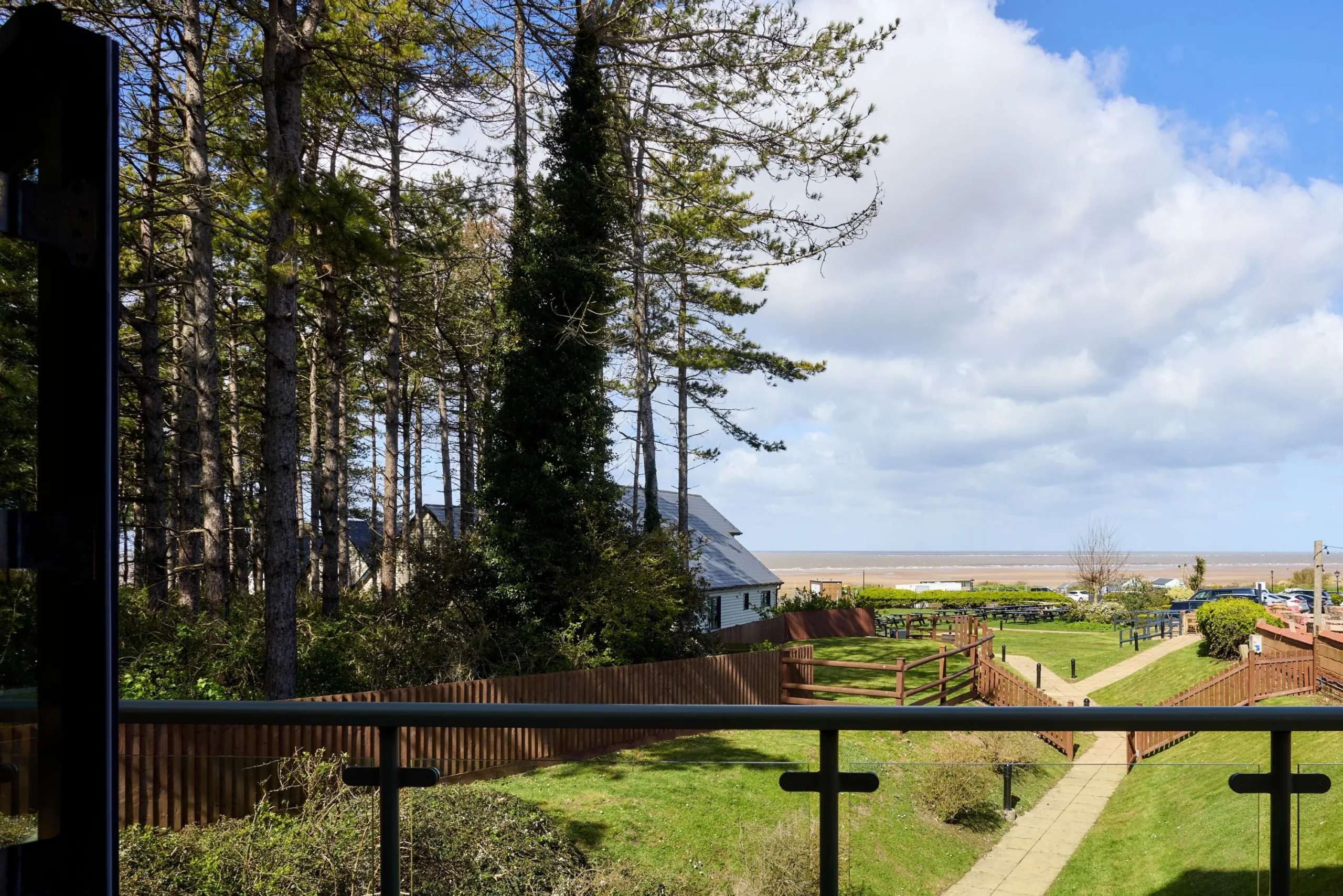 The open-plan kitchen and lounge provide a comfortable, sociable space to relax, with doors leading out to a private balcony overlooking the sea.