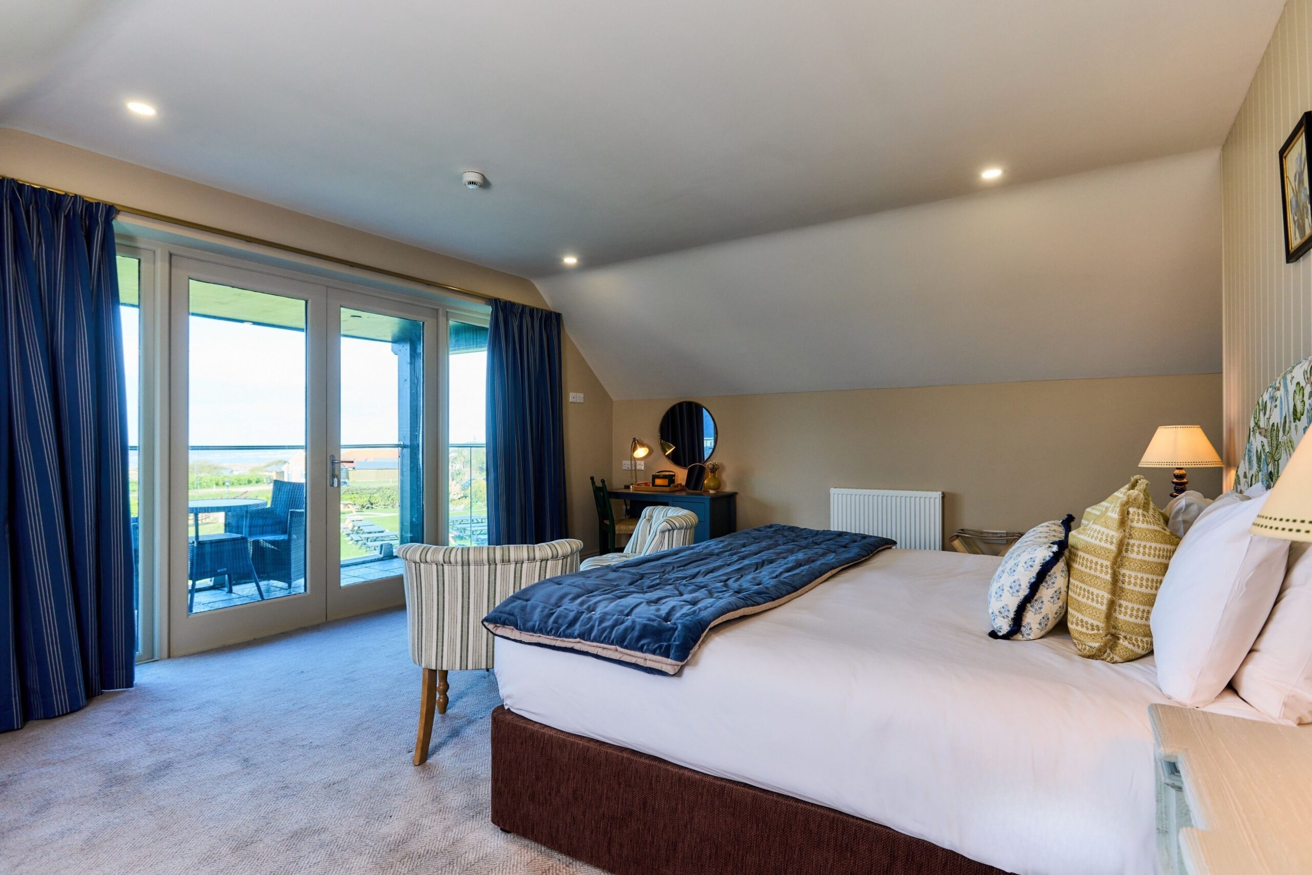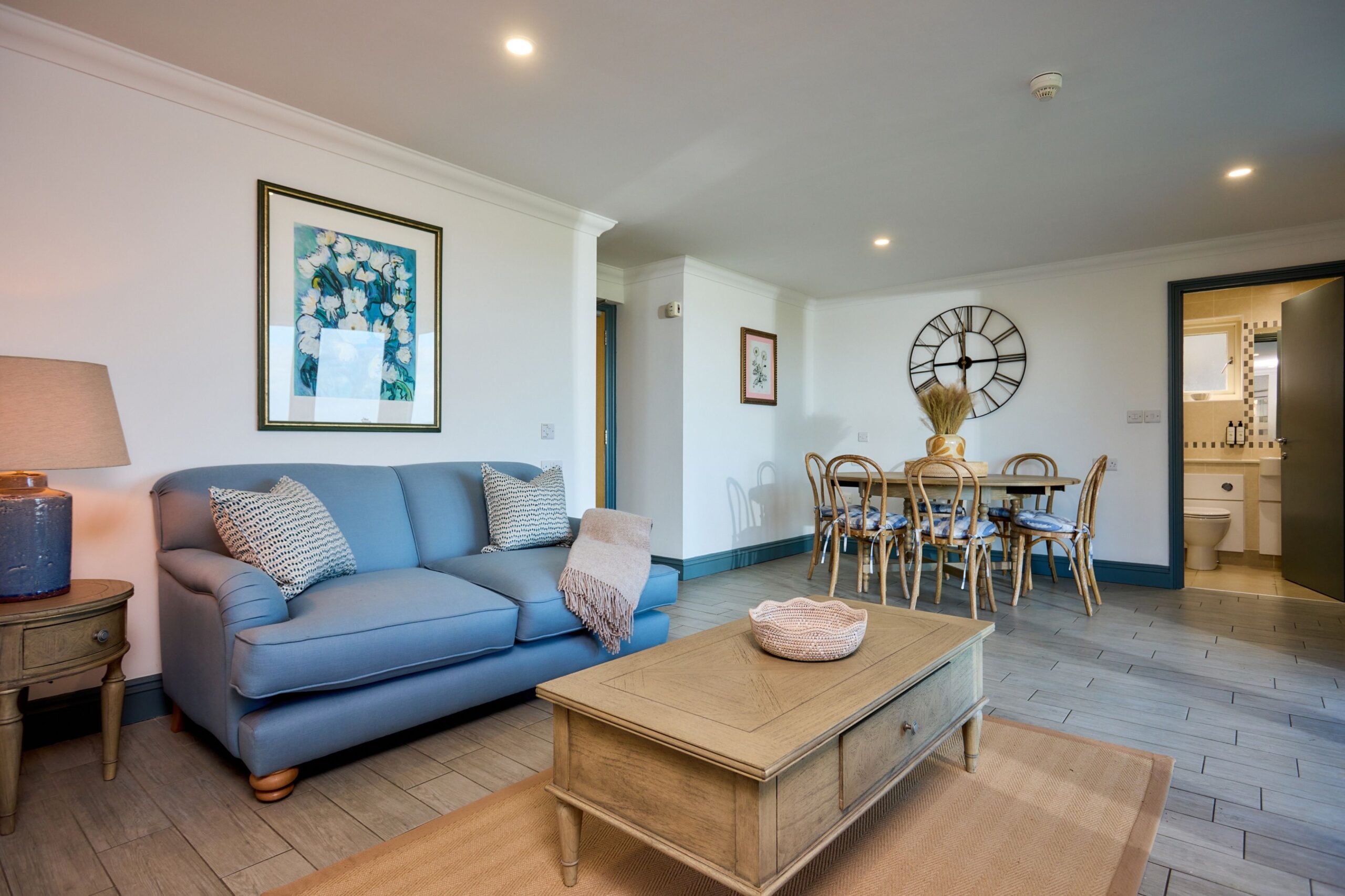 The two-storey lodges have been thoughtfully updated to make the most of the sea views, with a refreshed open-plan kitchen, lounge and dining area that feels both practical and comfortable. Upstairs, the master bedroom features a king size bed, en-suite bathroom, and its own seating area, along with doors opening onto a private balcony with uninterrupted views out to sea. The second and third ensuite bedrooms both have double beds that can be twinned.